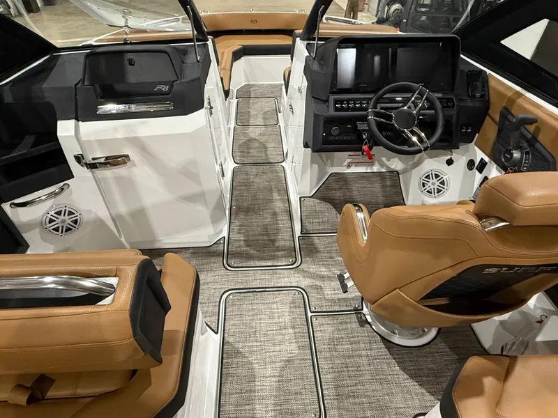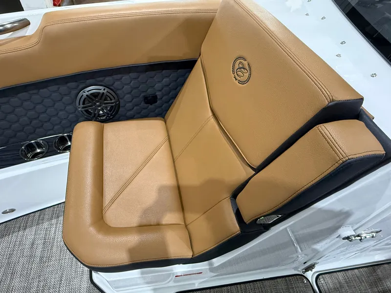 Finished in a striking Navy, White, and Frost Gray exterior, the R8 Surf makes an immediate statement at the dock. Step inside and you're welcomed by a rich Caramel and Carbon interior, accented with premium materials and Cobalt's legendary attention to detail. Every surface, stitch, and touchpoint reflects the brand's commitment to timeless design and uncompromising quality.