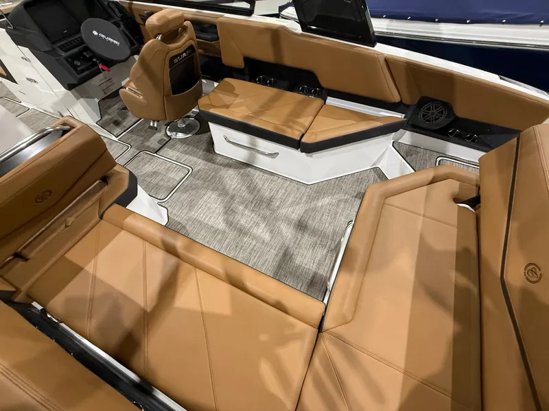 The rich Ebony and White exterior gives this boat a bold, upscale presence, while the Sea Grass flooring adds both durability and barefoot comfort-easy to maintain and perfect for long summer days on the water. Inside, every detail reflects Cobalt's legendary craftsmanship, from the premium upholstery to the thoughtful layout designed for entertaining, relaxing, and riding.