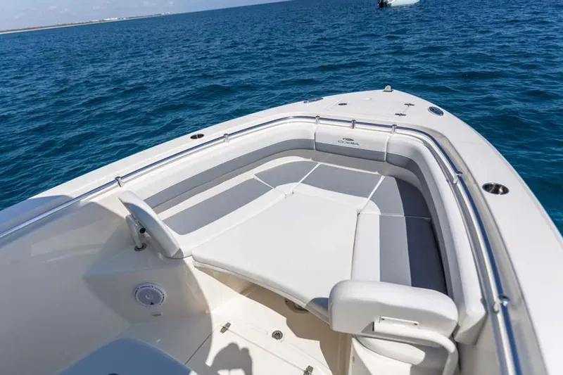 This is a great boat for fishing and spending time with family and friends on the water. The Cobia 280 offers plenty of comfortable seating as well as a easily accessible head inside the console. This particular boat is equipped with Yamaha's Joystick Control system to make docking and fishing alone stress free with autopilot and pattern steering. The 280 also accommodates fiahing with all of the expected amenities such as livewell and macerated fishbox as well as tackle storage.