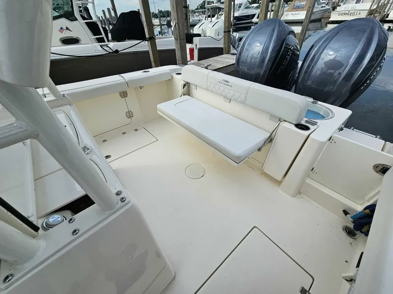 The 2021 Cobia 301 Center Console is designed for boating enthusiasts who seek a versatile and reliable vessel that excels in both fishing and family outings. Ideal for anglers looking for ample fishing features combined with comfortable seating and spacious deck layout, it also caters to families and friends wanting a stylish, safe, and enjoyable experience on the water. Whether you’re planning offshore adventures or coastal cruising, this boat offers the perfect blend of performance, functionality, and comfort for a wide range of boating activities.