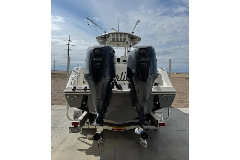 This 301 CC is fully loaded with major factory upgrades, Yamaha Helm Master EX with joystick and autopilot, Garmin electronics, JL audio, upgraded windlass system, hardtop with windshield, electric bow table, full cushion package, and a 2024 triple-axle Sea-Tech trailer.