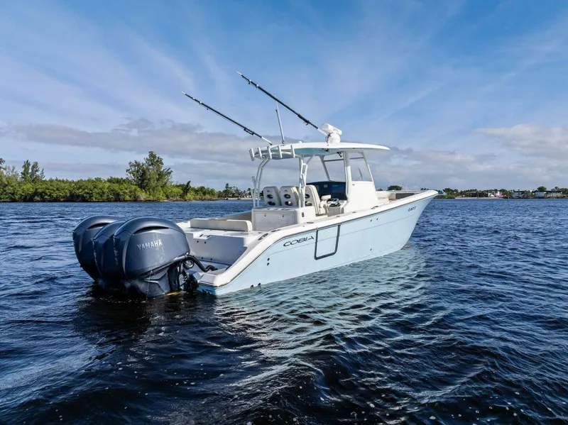 The Cobia 350 CC is a high-performance, luxury-oriented center console boat that blends serious fishing capability with refined comfort. At roughly 34.33 feet in length (with a beam of 11.17 ft), it provides substantial real estate for both angling and leisure. The hull is constructed using vacuum-infused fiberglass and features a double-stepped design, which helps optimize speed, efficiency, and a smooth ride with the SeaKeeper SK2.