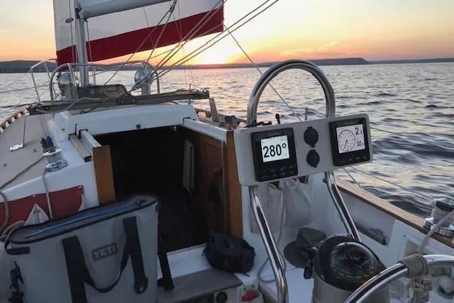 Designed by Robert K Johnson and built by the Hutchins Corporation. The Com-Pac 27 MKII is a shoal-draft cruiser that combines classic good looks with serious sailing capability. Com-Pac sailboats have a well-earned reputation for stability, seaworthiness, solid construction, quality components and exceptional workmanship. They were one of the most successful sailboat manufacturers of all time with production starting in 1970. The underwater design comprises of a shoal fin keel and a spade rudder offering easy handling in and out of marinas, along with a long waterline for it's length and a round bottom that provides excellent motion comfort. She has a deck-stepped masthead rig. This is a great weekend boat with more room than you would expect in a 27-footer It has galley, an enclosed head and a stateroom with a comfortable V berth. She has 6.8' of headroom. The main cabin has a deck hatch and opening ports for great cross ventilation. There are berths for 4 between the forepeak double & port & starboard settee berths with shelves behind and storage beneath. The forward cabin has a hanging locker to port and a set of drawers to starboard and opening ports & deck hatch. The galley is L-shaped on the port side & the private head with solid teak door is across on the starboard side. The head area is large with a mirror, opening port, sink & vanity and storage.The bi-fold table folds against the bulkhead when not needed and when down reveals storage shelves which are out of sight when the table is in the up position. Accommodations are very well thought out. Like most Com-Pac this one has lots of beautiful teak throughout including a teak & holly sole. The 18HP diesel inboard runs great and uses very little fuel. Storage lockers under the cockpit are deep and provide tons of storage space and easy access to the inboard and other components. It's a fresh water boat. The owner is downsizing and doing more land traveling.