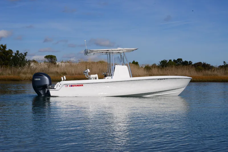 Contender sport series boats are rigged for your needs. Custom options for diving, fishing, and on the water fun makes each Contender unique. The 24S is a great day tripping boat with plenty of range offered from the 130 gallons of fuel capacity and great fuel economy. The 24S gets over 2.5 mpg @ 30mph when powered with a single Yamaha F300.