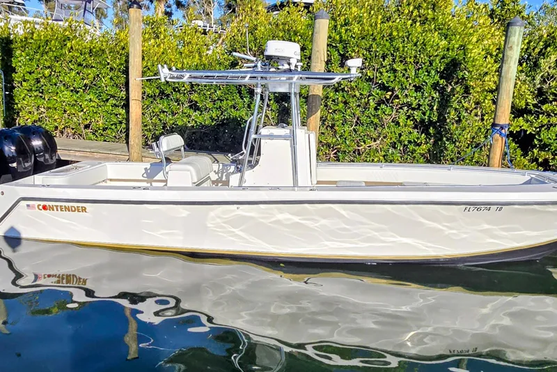 The 2005 Contender 27 Tournament remains one of the most respected center consoles in its class, and this boat is a truly clean, turn-key example. Powered by twin Mercury 275 Verados with approximately 875 hours, all services are fully up to date and the boat runs strong. The fuel tanks have been pressure tested and verified to be in proper working condition, and the wiring has been completely cleaned up and sorted, ensuring all systems function exactly as they should. A newer Garmin MFD and Garmin head unit outfit the helm, complemented by a coffin box, Frigid Rigid cooler, and brand-new upholstery throughout, including fresh coaming pads. This 27T is clean, solid, mechanically dialed-in, and ready for immediate use. Shown by appointment at Cortez Cove Marina.