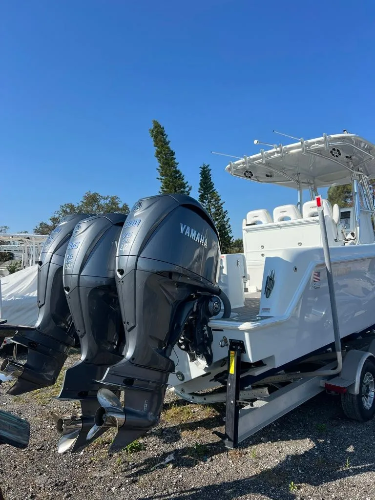 This boat is super clean, barely used. Everything you need and nothing you don't to tackle any situation you throw at it. Primarily built towards west coast fishing; its equipped with triple 300's Yamahas to make quick work of whatever run you have (45-50 mph cruise, 68 mph top), triple Lebroc helm chairs for a stable place to sit on those long runs, and a Rhodan trolling motor to hold you in place effortlessly when you get there.