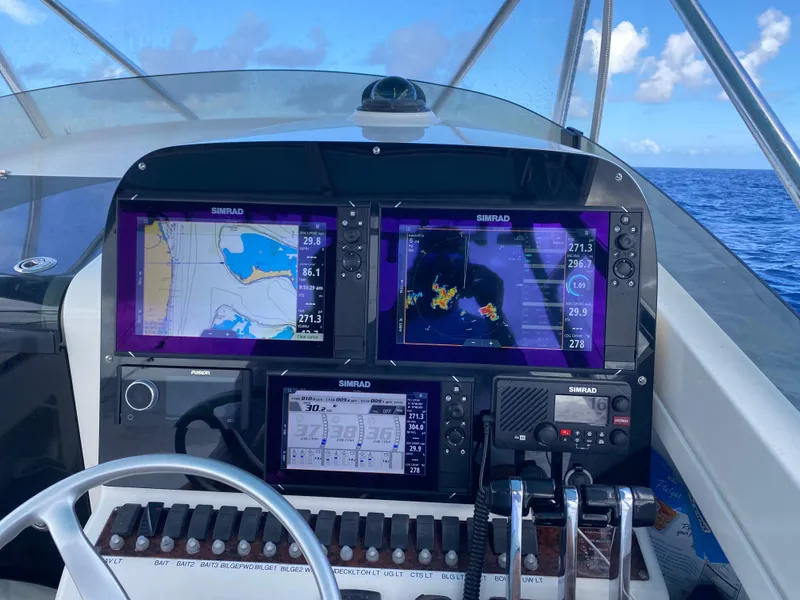 Equipped to fish, cruise with the family, weekend live aboard. She is equipped with a transom fish box /live well, in-deck fish box/live well, outriggers , LED underwater lights, New Simrad Navigation Equipment, Garmin Auto pilot, Fusion Stereo with JL Audio speakers. Cabin is equipped with queen size berth, standup head and shower, microwave, refrigerator/freezer, Kohler generator, A/C, and battery chargers.