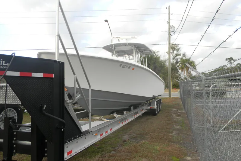 Introducing the 2022 Contender 39 ST, a remarkable center console boat that exemplifies performance and style. With an impressive overall length of 39 feet, this vessel is crafted from durable fiberglass, ensuring both strength and a sleek appearance on the water. Powered by a robust 3 x Yamaha F-350 NSA outboard engine installed in 2025, generating 1050 hp horsepower, it promises exhilarating rides and reliable performance, having only 197 hours of use. The stainless steel propeller enhances efficiency and durability, making it ideal for adventurous outings. Equipped with joystick control, maneuvering this boat is a breeze, providing a seamless experience whether you're docking or navigating tight spaces. The Contender 39 ST is designed for those who appreciate quality and functionality, making it a perfect choice for both leisure and sport. Experience the thrill of the open water with this exceptional vessel that combines modern technology with classic boating charm. New Ameratrail Fifth Wheel trailer purchased in 2025, 2- Garmin 8612's, Yamaha joystick, Night Tracks night vision, 2- Garmin vhf