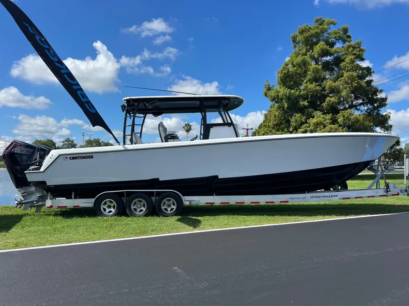 This Contender 39 ST Center Console is an absolutely incredible boat and it is available right now. It is Powered by Triple Mercury Racing 400 HP V10's which give it a cruising speed at 4000 RPM of 47 MPH and fuel economy of a little over 1 MPG. This boat is set up with the new Electric Steering w/ Joystick Piloting & Auto Pilot. The boat is loaded with unique options such as the Stadium Seating w/ Enlarged Hard Top to cover the Second Row of Seats. It is also equipped w/ the New Garmin 9219's w/ the powerful GSD 28 Sounder Module. It also has the Garmin Fantom Open Array Radar & a Black Oak Night Vision Camera. All the Switching is displayed on the Garmin Screens and there are redundant switches in the console w/ easy access. This boat is the ultimate for serious Offshore Fishing and Entertaining. It is loaded with excellent Seating and Storage while still having an abundance of open space. The rear bench seat is easily removable for added space in the rear cockpit. The stereo is insane and includes (2) 12" Subs, (4) 10" Subs, (6) 8.8" Speakers, (2) 7.7" Speakers, & (2) Speakers in the rear cockpit under the gunwales. The Gator Step flooring was just installed. Front and rear Black Stick shades.