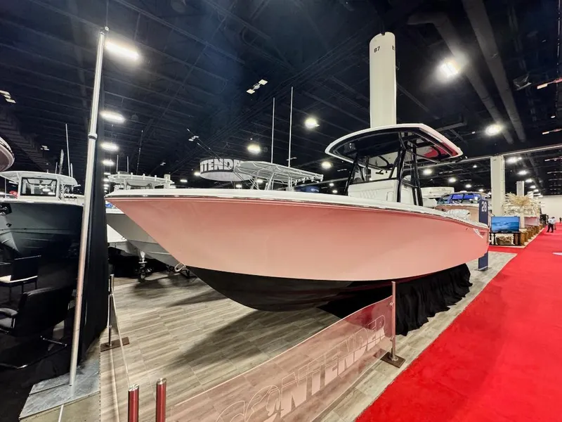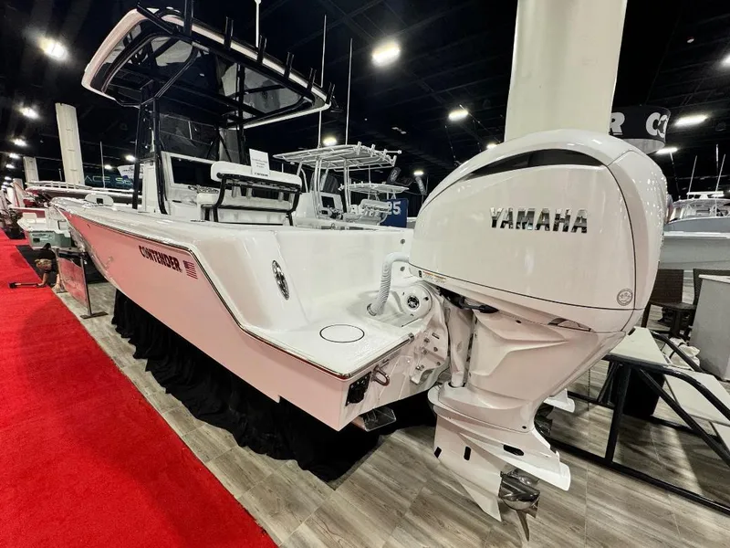 This boat is not in stock but we do have this model on order. This is the newly designed deck with sleeker deck lines. It is gorgeous. The 28 Contender Center Console does it all! It is powered by twin Yamaha 300 HP 4-Strokes w/ Digital Throttle & Shift & Digital Electric Steering. This is a hard core fishing machine that can be used for just about anything. The boat is loaded with nice seating for everyone. The boat some very nice features including the upgraded console with Electronics Box w/ Sliding Door. It is already set up with Garmin Electronics including two Garmin 8612XSV's. It also has the hard top with LED lighting & Electric Toilet. The engines are also set up with Digital Electric Steering. The list of options includes, Hard Top, Transducer Install, Additional Battery w/ switch, Electric head w/ Y-valve, Leaning post fixed back, Finger Grip Handrails on T-Top, King fish rod holders, Live well light, Live well clear lid, Gemlux flush mount scoops, Fresh water, Garelick boarding ladder, Pop-up stern cleats, Raw water wash down, Steering wheel - stainless w/ knob, Forward bow seating - Bench Style, Backrests - Forward Facing for Bow Seating, Rear fold down bench seat, Cockpit coaming bolster, Upholstery Bentley Stitching, Under gunnel rod racks, Rub Rail - Stainless Steel Insert