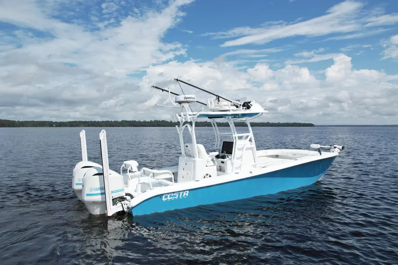 This meticulously maintained 2020 Costa Custom Boats 264 HC, is powered by twin Yamaha 300's. This vessel has been garage kept since new. Equipped with SeaStar Xtreme hydraulic jackplates, this vessel offers enhanced maneuverability in shallow waters. It features twin 10' Blade Power-poles, a 72" Minn Kota Terrova trolling motor, and a comprehensive navigation setup including a Simrad EVO3S 24" screen, a Simrad HALO 24" Radar, and a Simrad AP44 autopilot. The second station is equipped with an additional Simrad Evo3S, trim, and jackplate controls. This vessel also comes on an aluminum Ameratrail trailer. Costa Custom Boats is know for building an all around great vessel and this 264 is no exception.
