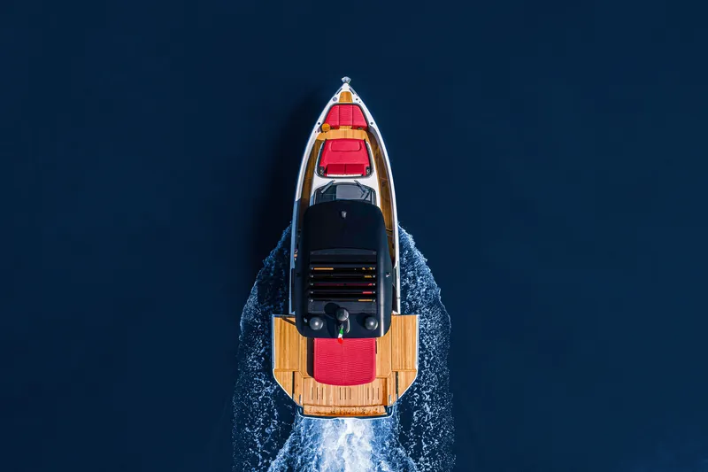 Christian Grande and the Centro Studi Ricerche Cranchi sculpt a deep-V hull into a floating oasis, with a vast cockpit and open deck designed as your personal entertainment haven. A custom wet bar with etched wood and stone surfaces anchors the party, while the 12-foot beam frames a plush owner's cabin with handcrafted oak, a sleek shower, and hull portholes that catch coastal light. Every teak plank and stitched leather detail, honed by Italian artisans, exudes enduring sophistication.