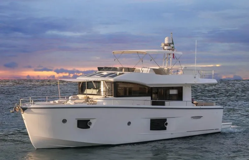 The Cranchi Eco Trawler 53 is a modern expedition yacht marketed for its exceptional fuel efficiency, spacious Italian design, and versatility for both long-range cruising and social day outings. Known for its "fast trawler" capabilities, it combines long range at 7.5 knots with the ability to reach higher speeds when needed.