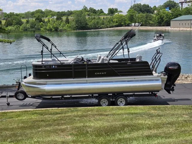 2022 Crest Pontoons Classic DLX 220 SLRC, 2022 Crest Classic 220 SLRC DLX comes with: 150 h.p. Mercury L with 70 Hours, Double Bimini Top, Custom Cover, Ski/Tow Bar, Ski Locker, Pull-up Table, Fusion Stereo/BT, Trailer, and more. Nice Boat...We sold New.