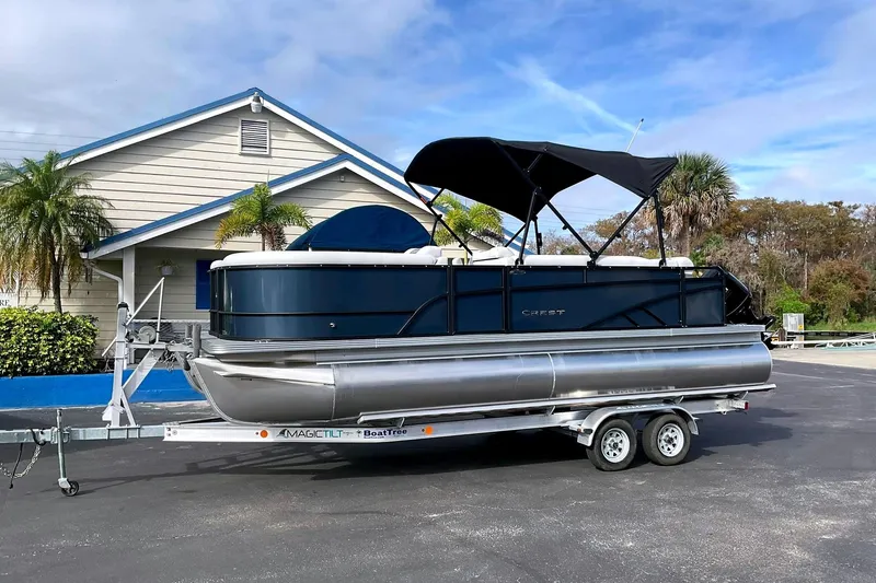 Introducing the stunning 2026 Crest Conquest SE 220 Cruise, a brand-new pontoon boat that perfectly combines style and performance. With an overall length of 22.5 feet, this aluminum-hulled beauty is designed for both comfort and adventure on the water. Powered by a robust Suzuki DF115 outboard engine, delivering 115 horsepower, it promises exhilarating rides and smooth cruising experiences. This versatile boat accommodates up to 11 passengers, making it ideal for family outings or gatherings with friends. The thoughtful design ensures ample space for relaxation and enjoyment. The Conquest SE 220 Cruise is equipped with modern features that enhance your boating experience, including a reliable battery system. Whether you're exploring serene lakes or enjoying lively days on the water, this pontoon boat is ready to create unforgettable memories. Experience the perfect blend of luxury and functionality with the Crest Conquest SE 220 Cruise.