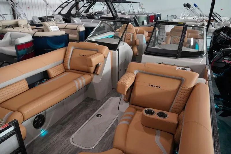 Here are some highlights of what customers are saying: 1. Exceptional Performance: Many users have praised the powerful 400 hp engine, noting that it provides exhilarating speed and responsiveness on the water. Whether cruising or towing, the performance has exceeded expectations. 2. Luxurious Comfort: Customers frequently mention the plush seating and spacious layout, making it ideal for entertaining family and friends. The high-quality materials and attention to detail contribute to an upscale boating experience. 3. Innovative Features: The boat's state-of-the-art technology, including advanced navigation systems and integrated sound systems, has received acclaim for enhancing the overall boating experience. Customers appreciate how easy it is to use these features while on the water. 4. Smooth Ride: The design of the CP3 tri-toon hull provides stability and a smooth ride, even in choppy waters. Many users have highlighted how comfortable it feels to be out on the lake, regardless of the conditions. 5. Versatile Layout: The flexible configuration options allow for customization to suit various activities, from relaxing to watersports. Customers enjoy the ability to adapt the space for their specific needs. 6. Impressive Storage: The ample storage compartments have been noted as a significant advantage, allowing for easy organization of gear, snacks, and personal belongings for a day on the water. 7. Stylish Design: The contemporary aesthetic and sleek lines of the Crest Continental 250 SLC CP3 have caught the eye of many buyers, who appreciate its modern look and feel. Overall, the 2024 Crest Continental 250 SLC CP3 (400 hp) is receiving positive reviews for its blend of power, luxury, and practicality, making it a top choice for those seeking an exceptional boating experience.