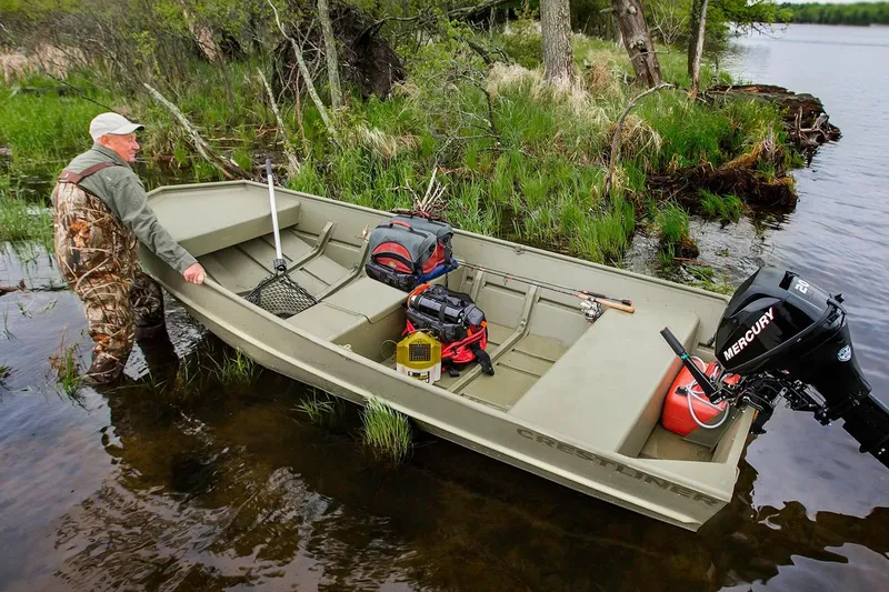 Introducing the 2025 Crestliner 1240 CR Jon, a versatile and robust Jon boat designed for both leisure and utility. With an overall length of 11.75 feet, this aluminum-hulled vessel boasts a flat shape, ensuring stability and ease of maneuverability on the water. The outboard engine configuration allows for efficient propulsion, making it an excellent choice for fishing trips or casual outings. This used boat is equipped with essential features that enhance your experience, including a reliable gasoline engine. Its durable construction promises longevity and resilience against the elements, making it a dependable companion for your aquatic adventures. Whether you're navigating serene lakes or exploring rivers, the Crestliner 1240 CR Jon is built to provide a smooth ride and a sense of freedom on the water. Embrace the joy of boating with this exceptional model that combines functionality with a sleek design.