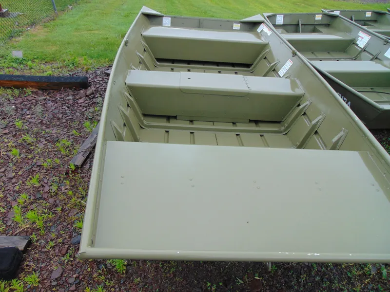 Both models include features such as oar lock sockets, formed corner caps at the stern, a stainless steel bow eye, and extruded gunnels. The 1448M CR Jon's modified V-bow design provides better performance in rougher water conditions.