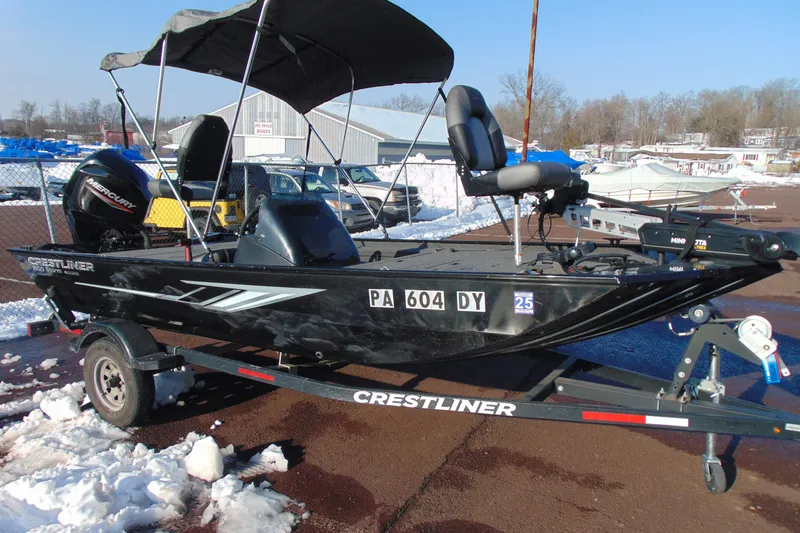 Introducing the 2020 Crestliner 1600 Storm, a remarkable used bass boat that combines performance and durability. With an overall length of 16 feet, this vessel is expertly crafted from aluminum, featuring a modified vee hull shape that ensures stability and agility on the water. Powered by a reliable Mercury 50ELPT CT outboard engine, this boat has only 92 hours of use, promising plenty of adventures ahead. The engine's gasoline fuel type enhances its efficiency, making it an excellent choice for both leisurely outings and serious fishing trips. Designed for comfort and functionality, the Crestliner 1600 Storm is equipped with essential features that enhance your boating experience. This boat is perfect for anglers and water enthusiasts alike, offering a blend of quality and performance that stands out in its class. Get ready to explore the waters with confidence in this impressive bass boat!