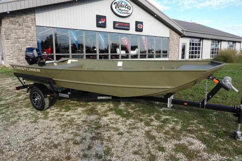 2026 Crestliner 1648M powered by a Mercury 25 hp 4-stroke electric start tiller handle motor. This boat includes a custom Bear trailer, Interstate battery, 6 gallon fuel tank, Mercury aluminum prop, and a gravity fed livewell system. Call Rob at Whites Marine Center today to take advantage of this new boat, motor, and trailer package at a Sale price of $9,995. Call the office or after hours.