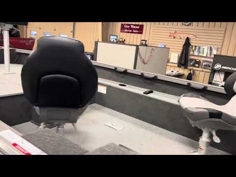 This boat is equipped with a Mercury 60hp four stroke Command Thrust engine, custom Trailmaster single axle trailer, side guides, swing tongue, aluminum rims, advanced tiller handle, vinyl main floor, aluminum prop, Mercury analog pre rig, extra pro seat complete, midnight edition package, bow cargo nets, 2 tackle trays, auto bilge pump, 2 suremount rod holders, 2 suremount top accessory mounts, boss stereo, custom travel cover, 24v upgrade, bow troller harness, and more! Color: Black Met./Fire Red