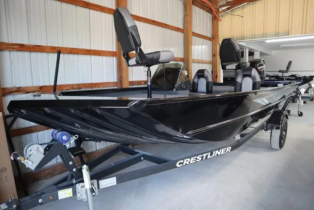 2024 Crestliner 1700 Ridge, Price Includes a Mercury 60ELPT EFI (Built in 2022), Aluminum Prop, Karavan Black Single Axle Trailer, Tie Downs, Edge 70/45 24V Trolling motor FP, Full Windscreen, Step Box, Transducer Bracket, Speed Tach, Fuel and Trim Gauges, Horn, Driver and Passenger Seats with storage, 2 DLX Seats with Pedestals, Port Rod Locker (4 rods up to 8') Stern 16 Gal Aerated Livewell, Wood Free Construction, Manual Bilge Pump, 2 Bank OnBoard Charger with 3 Total Batteries. Color is Full Black Hull with Gray Interior.