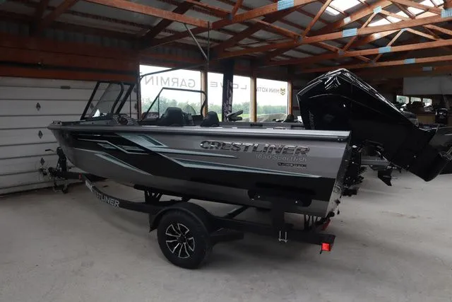 2026 Crestliner 1850 Sportfish, Price includes a Mercury 150XL Pro XS 4-stroke, Stainless prop, Hydraulic steering, Basic Bunk Single Axle Trailer, ratchet tie downs, vinyl cockpit floor, Pro Driver seat and Three Pro fishing seats all with standard pedestals, Bow 14 gal aerated and Aft 28 gal aerated livewell with Aft recirculating system, USB charging port, stereo w/ 2speakers, ski pylon and stbd side swim platform, Wireless Surface Phone Charger, Bow Bolsters and backrests, Bow Trim Switch, Minn Kota Powerdrive 24V 70/60 DSC FP, Humminbird Helix 5 Chirp GPS G3 @ console and three batteries. Factory Travel Cover & Transom Saver. Price includes dealer prep and freight and all factory rebates. Color is Metallic Black with Gun Metal Accent.