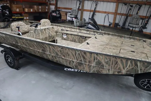 2026 Crestliner 2070 Retriever SCHD, Price includes a Mercury 105ELPT JET 4-stroke, Hydraulic Steering w/ Tilt Wheel, 27" Transom with Jet Modification, Karavan Trailer with Swing Tongue, Ratchet Tie Downs, Spray-in Roughliner, 19 Gallon Fuel Tank, Fuel Gauge, Horn, Windscreen, Gauge Package (Speed/Tach/Trim), Manual Bilge Pump, Navigation Lights, Courtesy Light, Bench Seat Upgrade, 53" Rod/gun Box w/ Seat Cushion, Bow Trim Switch, Bow Deck Storage Compartments and Bow 60 Gal Aerated Livewell. Two Fold Down Camo Fishing Seats, 6 Gauge Wiring Harness, Sponson Pods, Heavy Duty 0.125" Hull Gauge & HD Gunnels and Welded Transducer Bracket. Color is Mossy Oak Shadow Grass Blades
