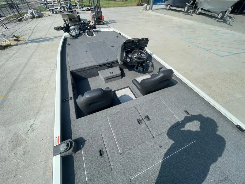 -The boat features port and starboard locking rod storage that can accommodate up to 5 rods each, as well as a center storage compartment for additional gear