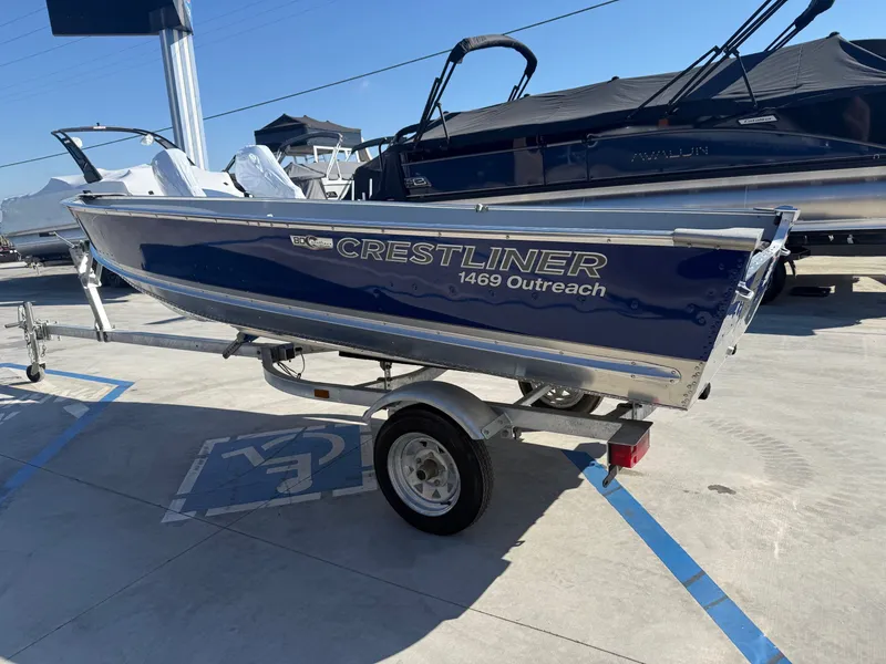 2026 Crestliner 1469 Outreach in Blue. COMES WITH A 9.9HP MERCURY!ALSO, Comes with Galvanized Trailer shown, Navigation light and 2-Step Strap Ladder on Starboard Side.* Price shown is Before Freight, Tax and other charges.** All incentives from the factory included in pricing.Call us or stop by 7 days a week at 559-432-2277