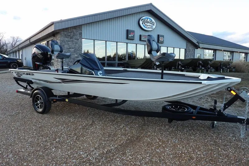 New 2026 Crestliner XF 189 powered by a Mercury 115 hp Pro Xs 4-Stroke motor. This boat includes the Pro Package (includes windscreen, upgraded steering wheel, auto bilge pump, aft recirculating livewell, insulated livewell and storage compartment lids, chrome compression latches, and LED interior lighting package), 2 Pro Seats with pedestals, driver and passenger Pro Seats, center glovebox (shown with optional center seat exchange), center rod box gas struts, insulated tackle tray insert box's, welded transducer bracket, bow trim switch, aerated stern livewell, livewell divider, recessed trolling motor footwell, horn, and much more.