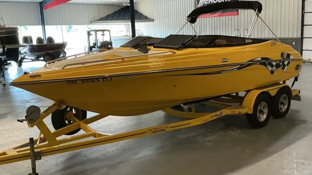 This 2003 CrownLine is a boat that sets you apart from all others on the water. With yellow exterior with black accent and white interior with yellow accents is stunning combination in a boat. The spacious cockpit and bow has enough room for your family or drinks for a fun day on the water. This CrownLine also includes a Bimini top, cockpit and bow cover, ladder at the stern for boarding, easy to read gauges at the helm, plenty of under seat storage, and floor storage. This Crownline is also equipped with a MerCruiser 5.0 engine ride 413 hours. Don't let this eye catcher get away.