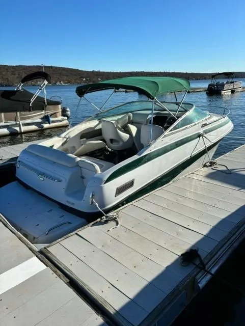 Just arrived, and in the water to lake test: 220 HRS 2002 CrownLine 215 Cuddy Cabin. MerCruiser 5.0L V8. 40+MPH.....1 owner, freshwater boat. Includes trailer Best looking interior condition, we have seen in a long time on a 22-year-old boat. All gauges operate, Bimini, cock pit cover, swim deck, table, freshwater system, snap in carpet flooring, depth finder, CD Radio. Picture shows that can be set up with Porta-Poti, and curtain in cabin.
