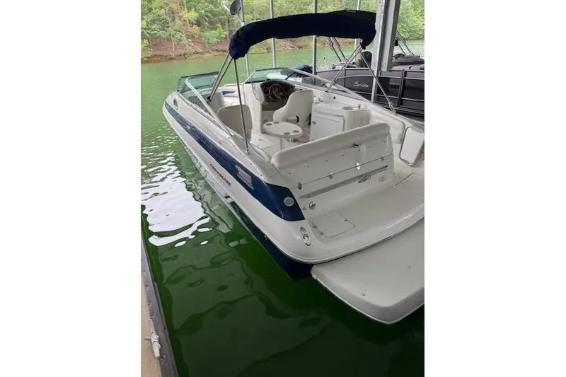 The Crownline 239 DB is loaded with features that give it great versatility: lots of room with an open floor plan surrounded by a wrap-around windshield with plenty of storage space; SAS buckets with adjustable driver seat height and full instrumentation at the helm; triple step-through areas at the bow, starboard and transom, an enclosed light-equipped head, a cockpit wetbar, plus a full array of practical standard features give this deckboat its owner-pleasing appeal. This boat is in great shape and with only 435 hours on the motor, it will not last long.