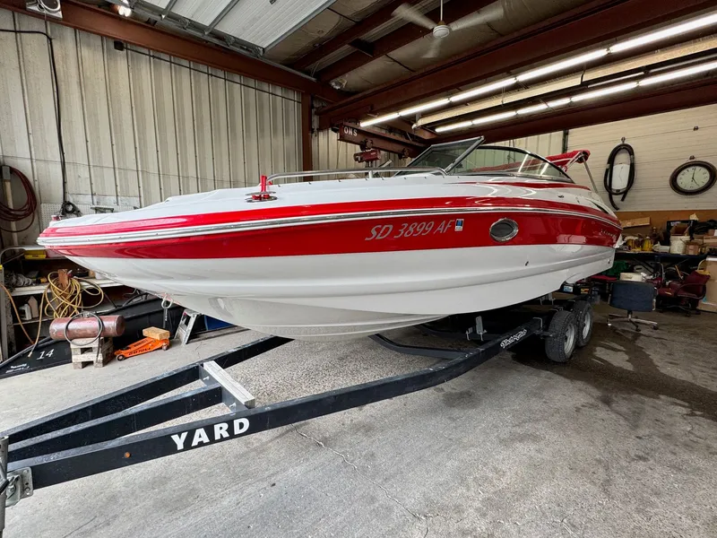 Finished in a bold, eye-catching Red exterior, this 252EX stands out both on the water and at the dock. Paired with a reliable MerCruiser engine, the boat provides smooth performance for cruising, tubing, and all-day lake adventures. Its wide 8 ft. 6 in. beam creates an open, inviting layout with wraparound seating, abundant storage, and multiple social zones ideal for entertaining.