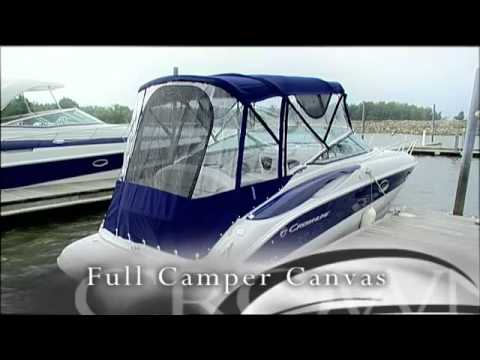 - Canvas - Color-keyed full camper canvas includes stand-up top w / Quick disconnect hardware, clear front bimini connector, side & aft curtains, embroidered boot, S/S tubing & hardware and retractable legs