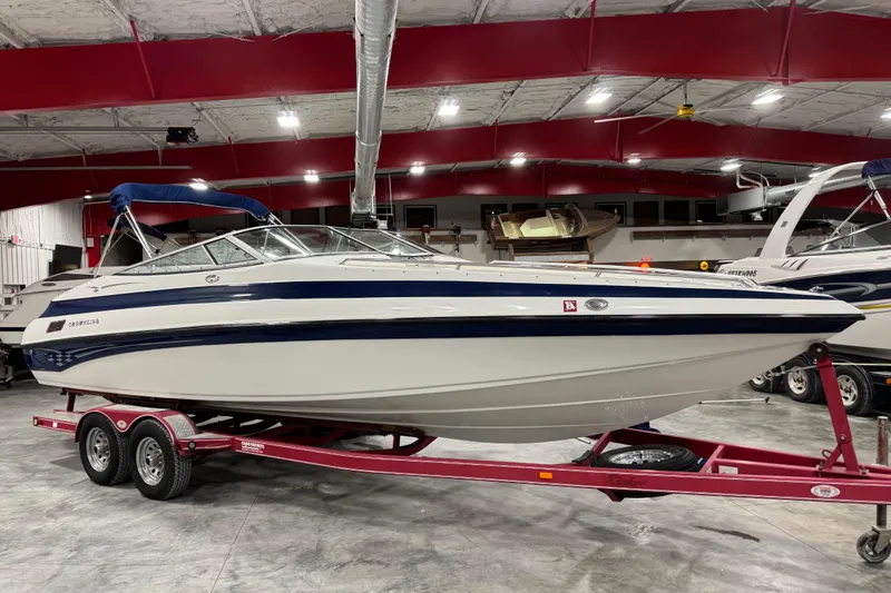 This is a great price on a 26 foot Crownline bow rider equipped with a MerCruiser fuel injected 5.0L MPI V8 with only 551 hours of runtime over key left on or idle RPMs, bravo three Drive, bow and cockpit cover, Bimini Top, AM/FM stereo, and more. Price does not include Trailer but we have used if available for $4900 or New for $6900. Financing and delivery are available. We accept trades. If the ads up and not sale pending then it's available please don't ask!!!