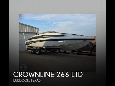 Crownline 266 CCR Specifications - Standard Equipment - Adjustable cabin lighting and mood lighting - Sony marine stereo with coaxial speakers - Anchor locker with tie-down and drain - Automatic bilge pump with manual override - Cabin and cockpit courtesy lights - Color-keyed Sunbrella bimini top with clear front connector plus boot and hideaway storage - Standard interior with glassliner and wrap-around seating - Cabin galley with sink - Color-coordinated pillows - Curved, tinted safety glass walk-through windshield with molded steps - Engine hour meter - Full fiberglass liner - Full instrumentation - Glove box (lockable) - Grab handles - Hanging locker - Hidden stainless steel telescoping ladder - In-floor storage - Lockable windshield wing vents - Pressure-treated wood with transferable lifetime warranty - Portable head - Rack and pinion steering - Removable mesh towel bags (2) (Super Sport interior only) - Stainless steel pull-up cleats, hardware, welded rails, and ski tow rail - Tilt steering wheel - Tinted deck hatch with screen - Two-tier drink holders - Two-tone Armorcote gelcoat or solid Moonstone, Opal - V-berth filler convertible to seating with back rest Crownline 266 CCR Optional Equipment Convenience Package - Depth sounder - Driver side windshield wiper - Shore power with battery charger and 50-foot cord - Dual battery switch - Alcohol - electric stove - Portable table - Sunbrella color-keyed full canvas Super Sport Interior - Two adjustable buckets - Pull-out sunpad bench - Sundeck