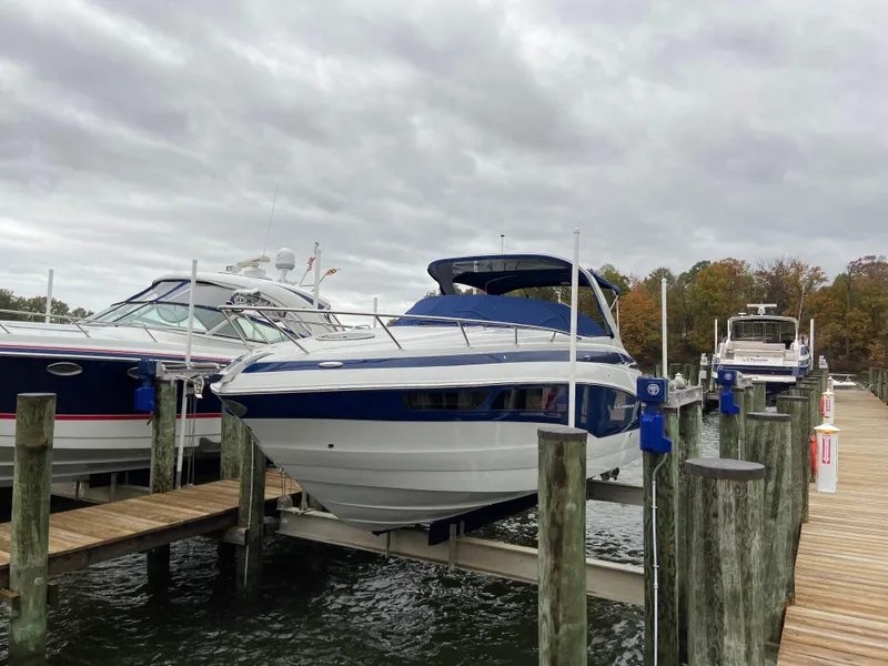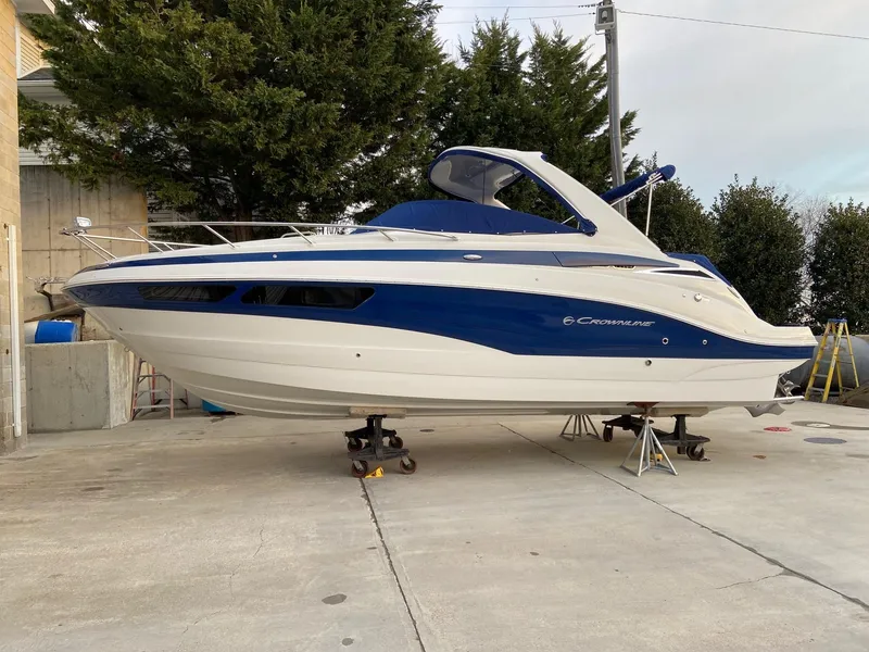 You're viewing a 2020 Crownline 294 CR that is loaded with all of the popular options featuring white & blue hull sides. Features on board include Twin Volvo Penta V6 280HP Engines with only 164 hours, large hardtop with full canvas enclosure,kholer 7.5kw generator, AC & Heat, Shore power, trim tabs, Garmin GPS, Fish Finder, Depth Sounder, anchor windlass, battery charger, snap in cockpit mat, fender clips, under water lights, stereo system & cabin tv and several other great features! We are Rhode River Boat Sales of Maryland and have been in business for 41 years. Please contact us by email or call to setup an appointment to see this stunning Crownline 294 CR!