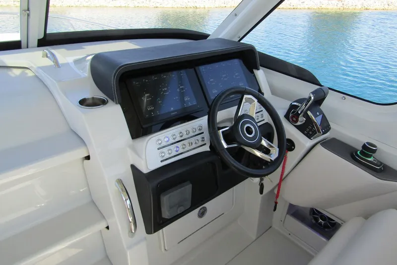 The propulsion on this 310 CRX features twin Mercury 350 Verado engines with DTS (Digital Throttle & Shift) controls which, coupled with the standard Joystick steering and standard bow thruster, takes the performance and maneuverability of this boat to the highest level. The 310 CRX slices cleanly through offshore and inshore waters, providing a solid, safe and dry ride and great maneuverability. If you plan on doing most of your boating on water with more wave action, the Seakeeper gyroscopic stabilizer greatly reduces roll and pitch in those environments.