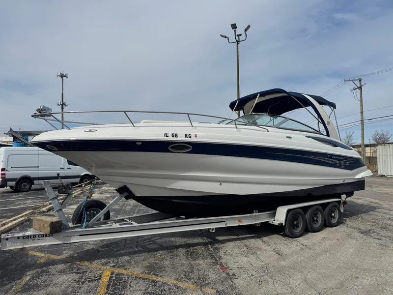 Crownline's 315 Sport Cruiser covers every base. The stylish, sporty exterior lines and F.A.S.T. Tab hull design will definitely catch your eye. The transom features dual walk-thru entryways for boarding. The spacious cockpit area will accommodate the whole family and then some. The portable table is great for meals, snacks or playing games. Sun worshipers can stretch out on the oversized aft sunbed. And there's tons of storage space. Standard features on the 315 SCR - wetbar w/handrail and Karadon top, pressurized water system, extended swim platform, radar arch, and full instrumentation, just to name a few. The cabin features sleeping for 4, a large head and well equipped galley. A trailer can be purchased separately from the seller.