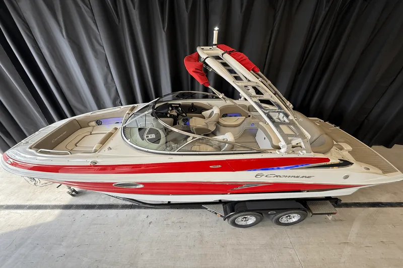 The 2018 Crownline E23 delivers family fun with all the comforts you need for full days on the water. Powered by a 350 MerCruiser with just 315 hours and matched to a trailer, it's ready to go. Highlights include a pump-out head, bow armrests with filler cushion, power-operated rear lounger, and dual biminis for full-boat shade. With bow and transom washdowns, cleanup is a breeze-perfect for active families who want comfort and convenience.