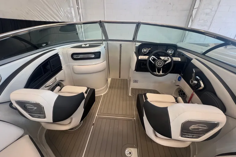 Modern Design: The Eclipse E290 XS features a sleek and contemporary design, with clean lines and a sporty profile that stands out on the water. 2. Spacious Layout: This model offers a roomy cockpit and ample seating, making it ideal for entertaining family and friends. 3. Performance: Equipped with powerful engine options, the E290 XS delivers strong acceleration and smooth handling, suitable for watersports and cruising. 4. Comfort and Amenities: The boat includes premium upholstery, a well-equipped helm, and convenient features such as a sunpad, swim platform, and optional hardtop. 5. Quality Construction: Crownline is known for solid build quality and attention to detail, ensuring durability and reliability. 6. Versatility: Whether for day cruising, watersports, or relaxing, the E290 XS adapts well to various boating activities.