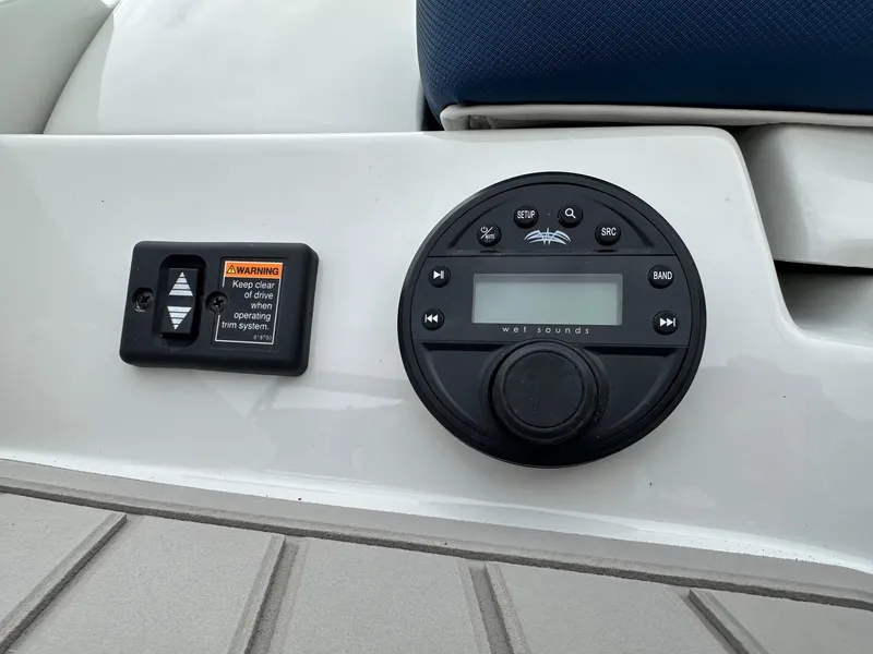 This 270SS is Amethyst and Sterling in color. Boat has tons of standard options such as twin touch screen Garmin's in the dash, top of the line Wet Sounds stereo, on-board battery charger, electric flush head, docking lights, LED lit cockpit, U-Wrap cock pit seating, LCD transom remote, social swim platform with speakers facing out, storage drawer for table, transom trim switch, bow filler cushions, electric power arch and fender clips. Come check it out! We are well below cost on this unit! Yes, $138,000, boat is brand new.