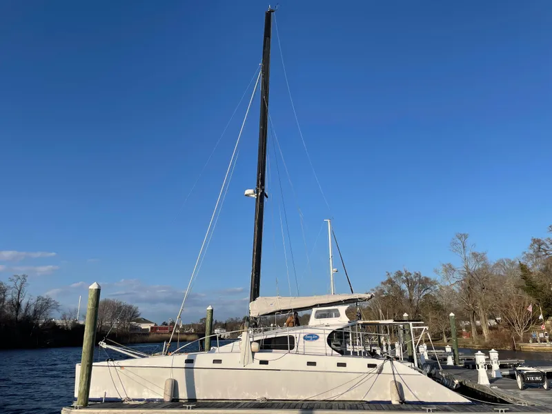 This Crowther Custom 46 Catamaran should be a top choice for those seeking a blend of performance, comfort, and durability. Known for their sleek design and long, stable hulls, Lock Crowther's design offers exceptional stability without sacrificing adaptability, making for an excellent platform for any sailor. The spacious interior ensures comfort during extended trips, while the solid construction provides reliability in all conditions. With a rotating mast for precise handling, twin outboard engines for simple and consistent power, and impressive speed potential, the Crowther 46 delivers both luxury and performance on the water. Constantly upgraded and professionally maintained, this boat has benefited immensely from her current owner. New sails, engines, electronics, standing rigging, not to mention the significant upgrades to the interior and creature comforts, the list goes on and on. Whether you are veteran sailor looking for a sporty daysailer/weekender, a young couple getting into the cruising world, or an individual looking for a potential charter business opportunity, Ocean Zen has it all.