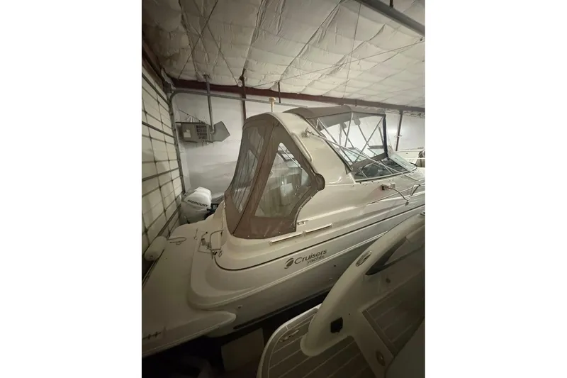A nimble, responsive performer, the Cruisers 2870 Express offers excellent handling and sleek, contemporary styling. At the same time, it provides impressive comfort belowdecks for boaters embarking on a weekend cruise or on a cozy overnight escape. The 2870's on-deck layout includes a double-wide helm seat, fore- and aft-facing cockpit settees, and a walk-through windshield with molded-in steps for easy foredeck access. To keep onboard guests comfortable and out of the elements, the 2870 features an attractive, custom-fit full enclosure. Her helm station includes easy-to-read instrumentation, room for navigational equipment, and excellent visibility. The wide-open interior includes a well-appointed galley with a refrigerator and an electric stove; a crescent-shaped convertible dinette - double berth; and a generous double berth forward with a privacy curtain. There's also a place for the optional TV and VCR. The 2870 can comfortably accommodate overnight guests or additional family members with a fixed double berth, located with a privacy curtain aft to port of the companionway. The 2870's large head features full standing headroom and a shower.