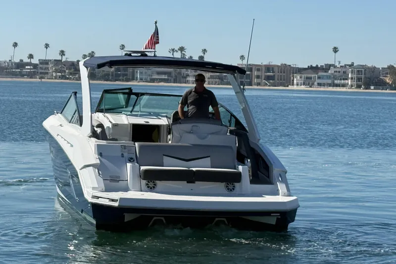 Introducing the 2015 Cruisers Yachts 328 Bow Rider, a stunning bowrider that effortlessly combines style and performance. With an overall length of 32 feet, this vessel is designed for both leisure and adventure on the water. The sleek fiberglass hull ensures durability and a smooth ride, while the powerful twin Volvo V8-350 engines, each boasting 350 hp, deliver exhilarating performance with a cruising speed of 25 knots and a maximum hull speed of 45 knots. Equipped with an electric windlass, this boat enhances convenience during anchoring, making it perfect for family outings or entertaining friends. With 460 hours of use, it has been well-maintained and is ready for new adventures. The spacious layout offers ample room for relaxation and enjoyment, making it an ideal choice for creating unforgettable memories on the water. Experience the thrill of the 328 Bow Rider, where fun and functionality meet.