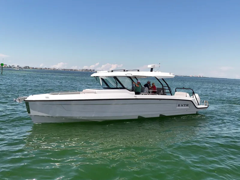 This 2026 Cruisers Yachts 38 VTR is a masterclass in modern day-boating, blending a high-performance hybrid stepped hull with the luxury of a premium overnight cruiser. Featuring an innovative fold-out beach door and expansive open-deck social zones, this adventure-ready vessel is engineered for everything from high-speed watersports to sunset entertaining.