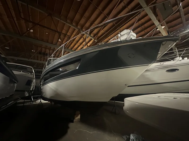 Which brings us to this newly available 100% fresh water 2016; a two-owner vessel sold new to the first owners by us, sold used to the second owners by us and always serviced/stored by us. Sporting a pair of Mercruiser 8.2L engines w/Bravo 3 SeaCore outdrives and much desired Axius control w/SkyHook, it'll assuredly provide lively fun under-way but also the peace of mind and confidence in/around the dock that the joystick provides. With an abundance of seating throughout the cockpit, a cockpit wet-bar, center walk-thru passage to the bow's inviting sun pad, you can easily picture her outdoor entertaining versatility, and the below-decks accommodations provide owners with the perfect retreat for an evening or more. Her spacious salon, large galley, head w/separate shower and of course island queen forward welcome the respite required after an ideal day on the drink.