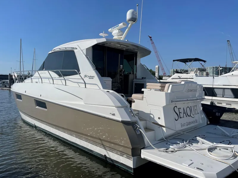 The Cruisers Cantius 48 is a boat with a unique layout with ample space for all. The two state room, Bow VIP and Full Beam Master, are both equipped with en-suite head and showers, cedar hanging closets, and storage. The gracious Galley and Seating are spacious and illuminated with great natural light.